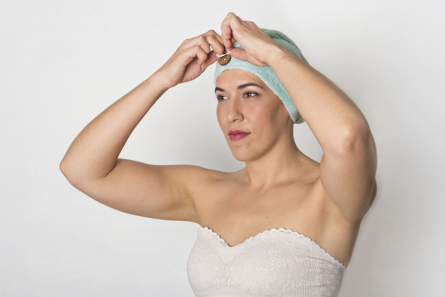 Después de aplicar una mascarilla con el No Frizz o con aceite en tu cabello, puedes usar el turbante para crear un microclima cálido y húmedo, lo que aumenta la eficacia de los productos al abrir las cutículas del cabello.